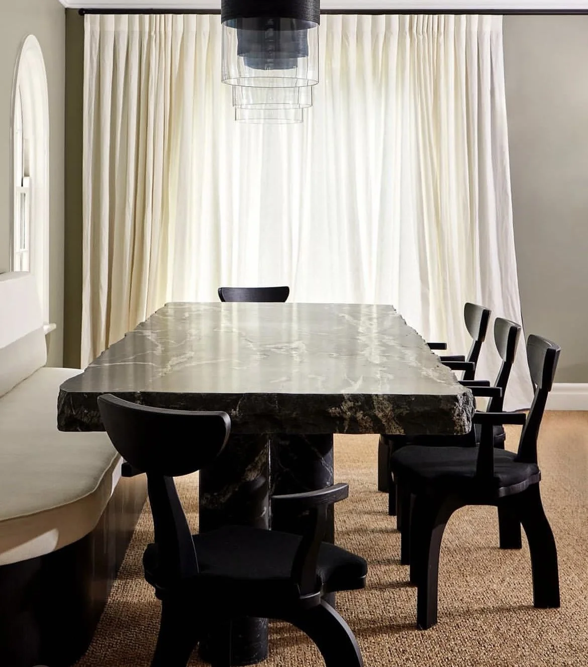 A moody & sensual entertaining space, seamlessly fusing tones, soft lighting, and opulent textures.